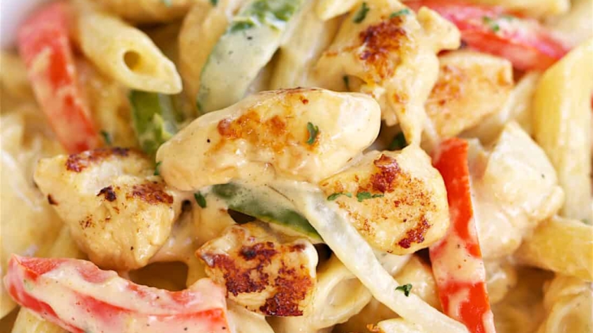 Chicken Fajita Pasta Alfredo – ready in 15 minutes! All the flavors of fajitas tossed with pasta and an easy homemade Alfredo sauce. Chicken onion, bell pepper, fajita seasoning, heavy cream, pasta and parmesan cheese. Everyone loved this! It has already been requested for dinner again! Very little prep and ready in 25 minutes. GREAT weeknight meal!