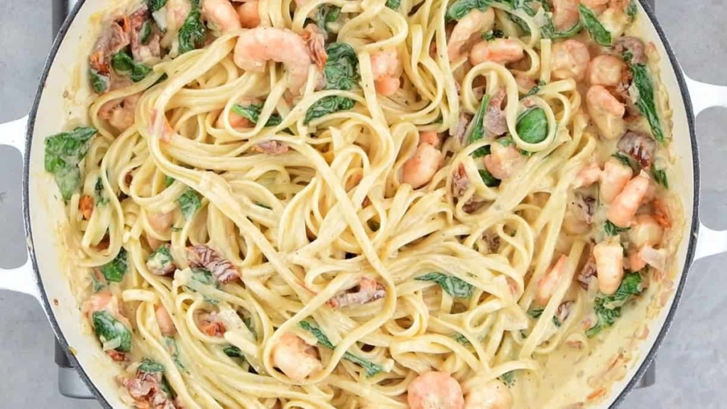 Creamy Tuscan Shrimp Linguine is arguably one of the world’s easiest and tastiest recipes! Only a handful of ingredients and you have a delicious meal on the table in about 20 minutes.