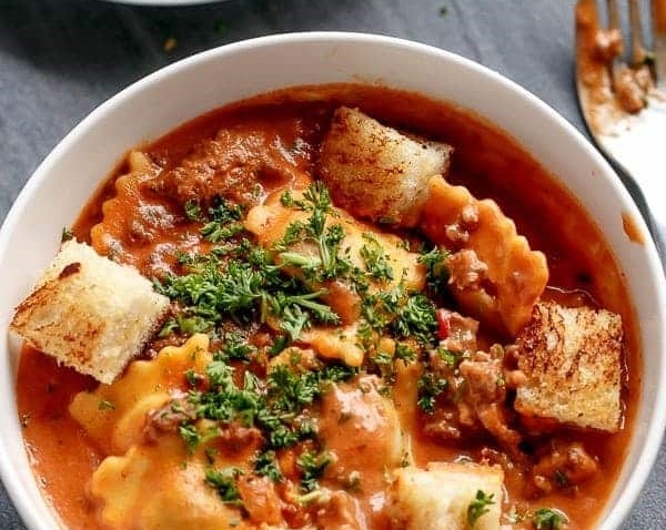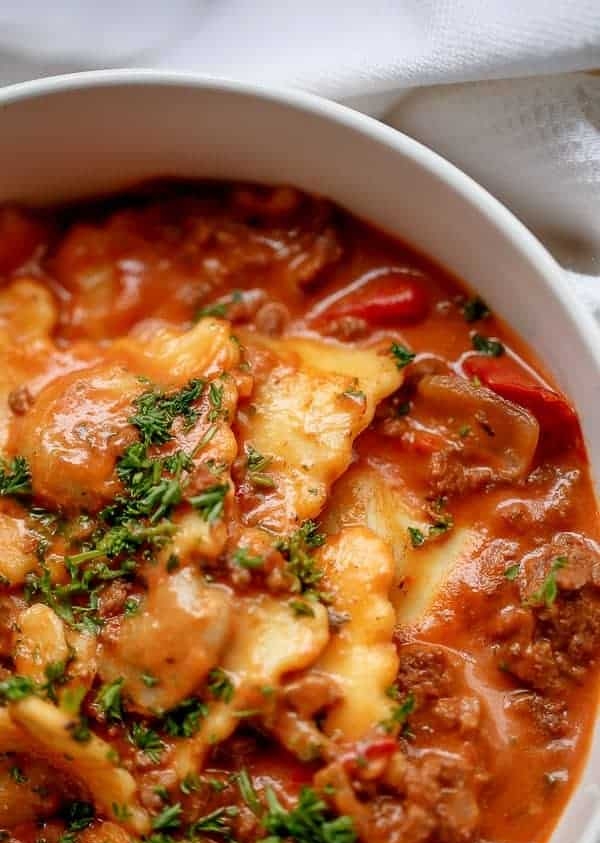 One Pot Ravioli in Tomato Beef Sauce
