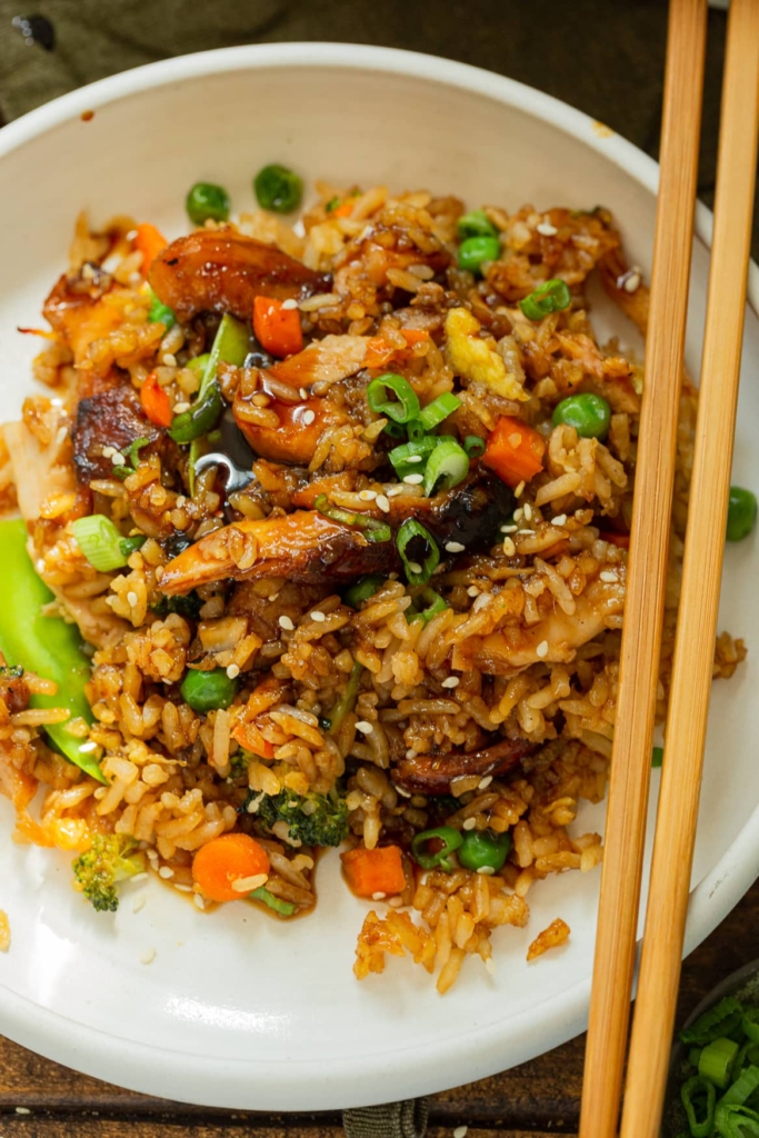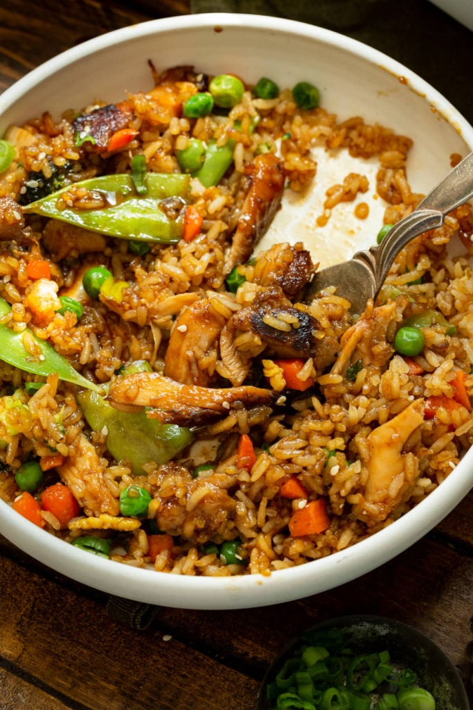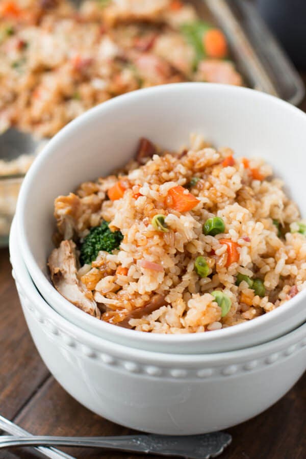 This classic baked teriyaki chicken casserole recipe is easy to make and the perfect crowd pleasing recipe for a busy weeknight dinner or potluck. It’s everything you love about takeout without leaving your house! Casseroles are great for dinner because they’re easy to throw together and comforting to come home to. One of our most viral recipes is a casserole…try our cheesy ground beef and rice casserole for maximum comfort food! This teriyaki casserole combines chicken with a sweet savory glaze mixed with tasty fried rice and loads of healthy vegetables!