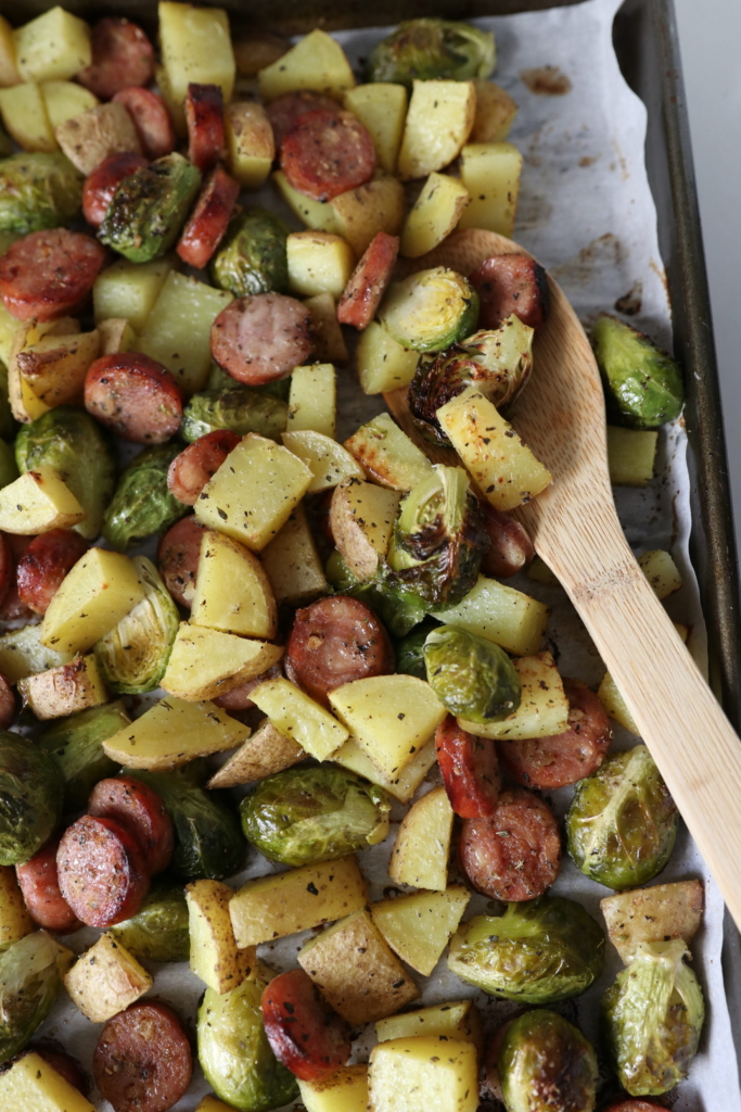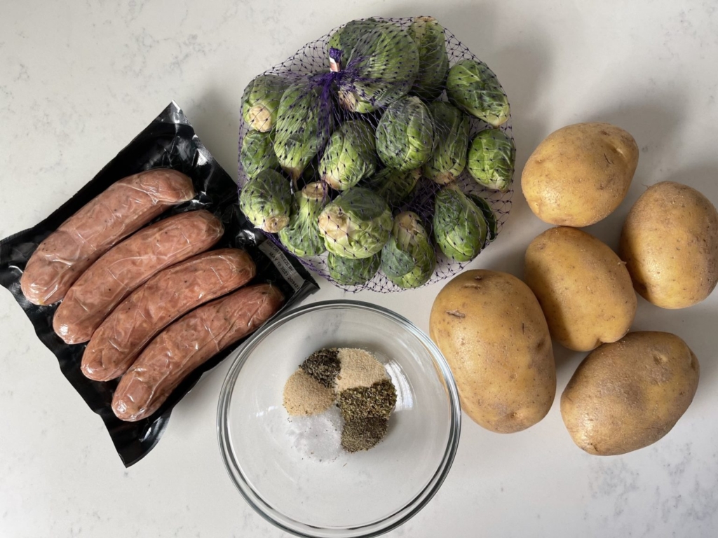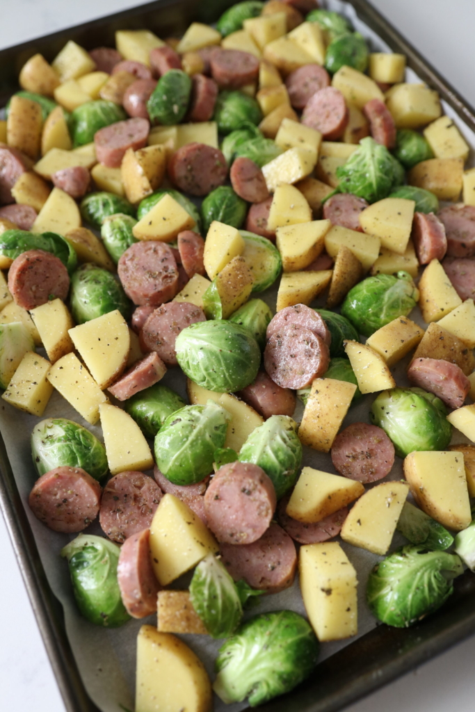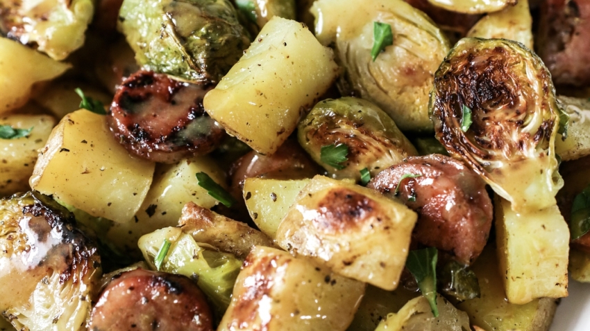 Sheet Pan Sausage, Potatoes & Brussels Sprouts