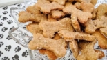 Bake for 30 minutes, then turn oven off and leave treats in oven overnight. Store treats in air-tight container for up to 2 weeks, or freeze for up to 3 months. ~ Woof!