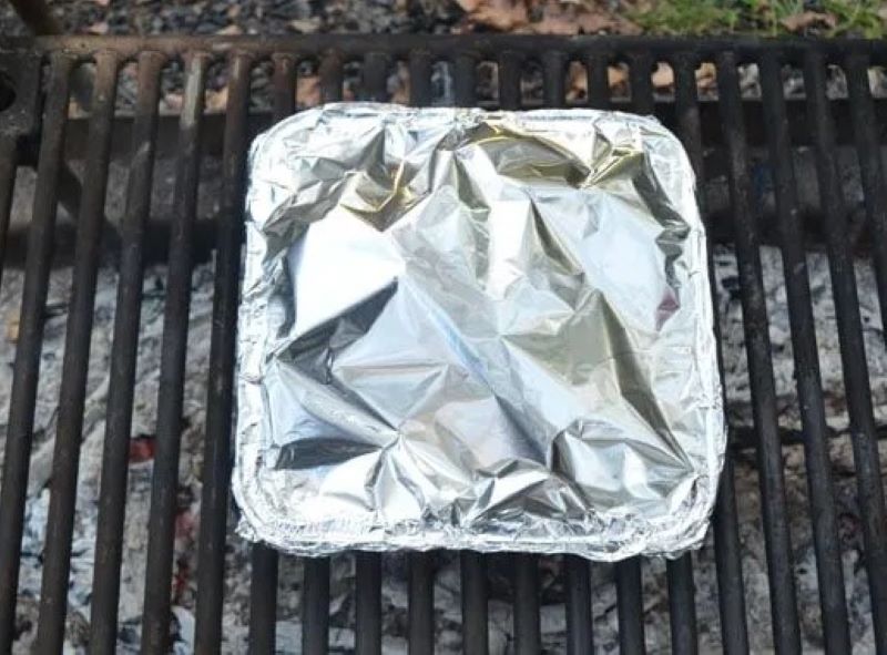 Place the pan on the grate of a grill or over the campfire.