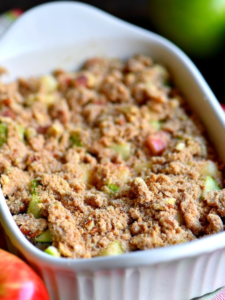 Combine flour, sugars, and apple pie spice in a medium bowl. Cut in butter. Stir in graham cracker crumbs and chopped pecans. Refrigerate streusel until you are ready for it.