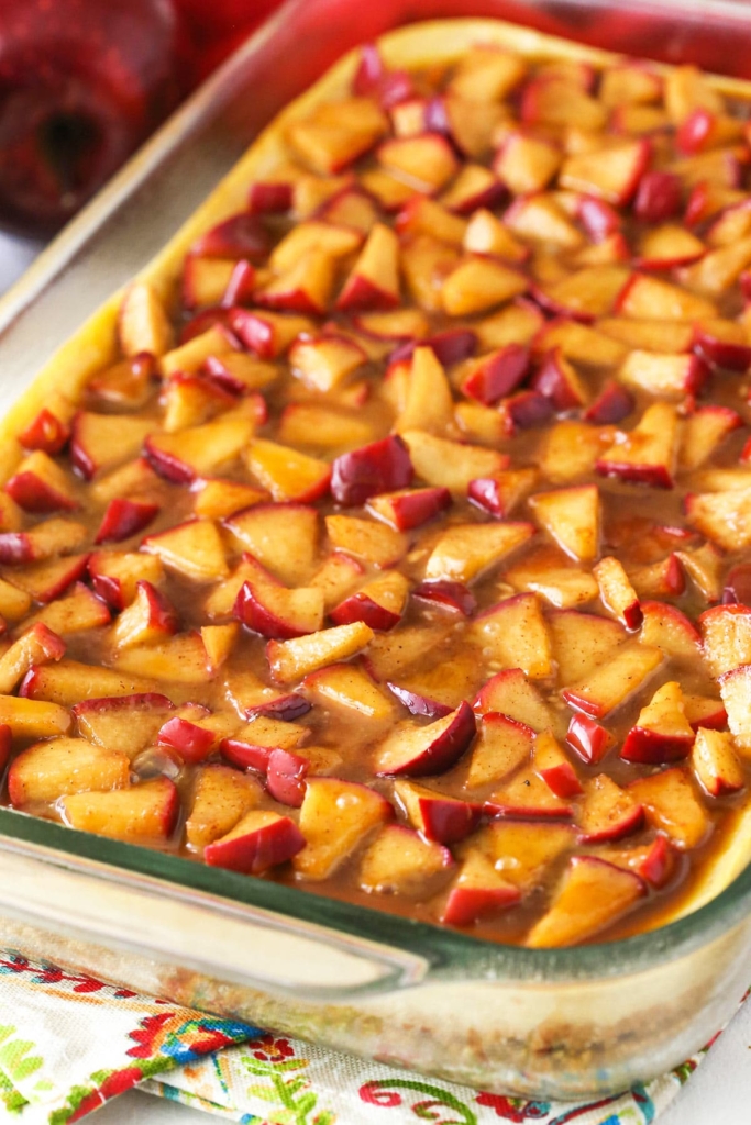 Allow the apples to cool for a minute, then spread evenly over the cooled cheesecake.
