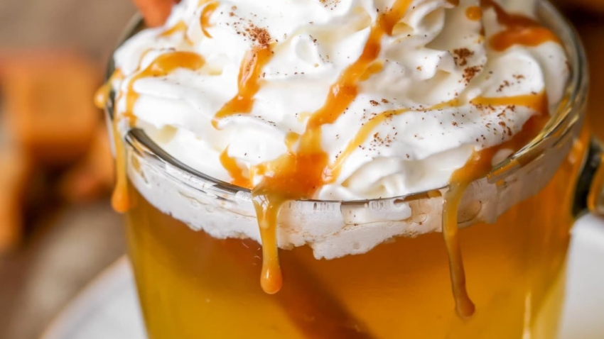 Combine apple juice/cider, caramel syrup, lemon juice and apple spice in a large pot.