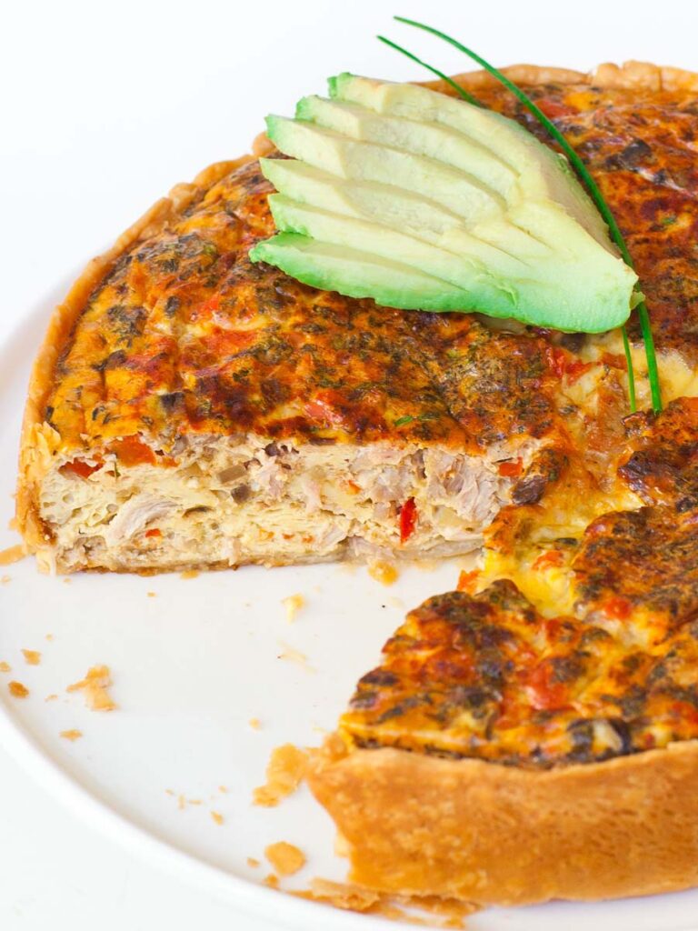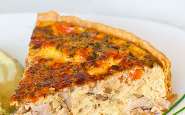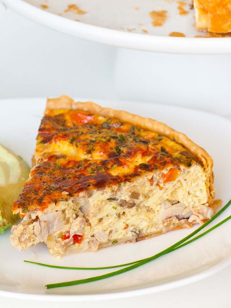 It’s the day after Thanksgiving or Christmas, and you have loads of food and turkey leftover? This cheddar and turkey quiche is the most delicious way to use up all the leftovers the next morning! It’s filled with shallots, mushrooms, red bell pepper and sweet tomatoes. Just pull the turkey meat away from any bones, chop it up and add to the recipe! You don’t have to wait until the holidays to enjoy this cheddar quiche! Make it any time of year with leftover chicken or diced ham, too! I also like to add breakfast sausage or bacon bits for added flavor.