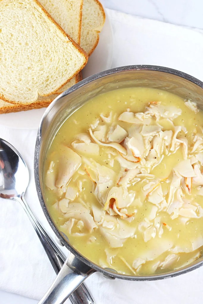 Add the turkey and stir to combine, breaking up any clumps of meat. Continue simmering over low heat just until the turkey is heated through. Taste and add salt and pepper as needed.