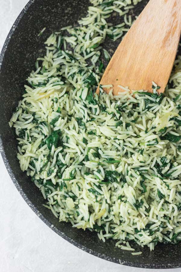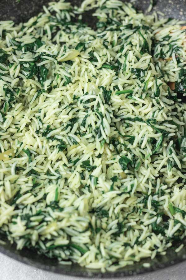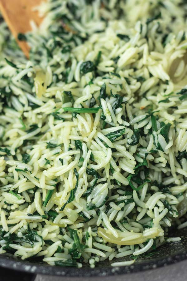 This easy spinach rice recipe, spanakorizo, is about to be the only way you make this Greek rice recipe. It is simple, quick, healthy and delicious. This homemade spinach rice uses a handful of ingredients and a quick way to make your white rice utterly delicious. You can serve it with everything and anything, it is a perfect side dish, and a great option for a quick weeknight dinner for when time is of the essence.