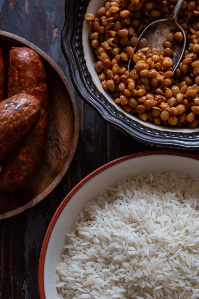 This Brazilian Style Dirty Rice might be a far stretch from the authentic Creole dish. But it’s tasty, easy and made in one pot! And who doesn’t love that, especially on a busy weeknight? This Brazilian Style Dirty Rice might be a far stretch from the authentic Creole dish. But it’s tasty, easy and made in one pot! And who doesn’t love that, especially on a busy weeknight? Dirty Rice with Sausage and Lentils made in one pot! If you’re familiar with Brazilian cuisine, you know we love our rice! We eat it daily, usually as a side, accompanied by beans, or as part of a more elaborated meal, like rice casseroles or our many versions of “dirty rice”. These meals are often a great way to use leftover rice, and whatever else is in your fridge, too. But the truth is this Brazilian style dirty rice is really easy to make. And, if you have leftover rice to use, then it’s pretty much a fast and furious way to get dinner on the table!
