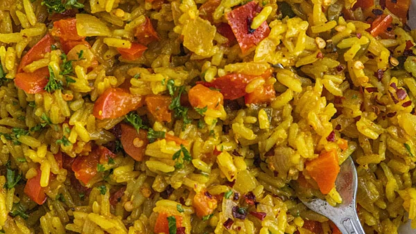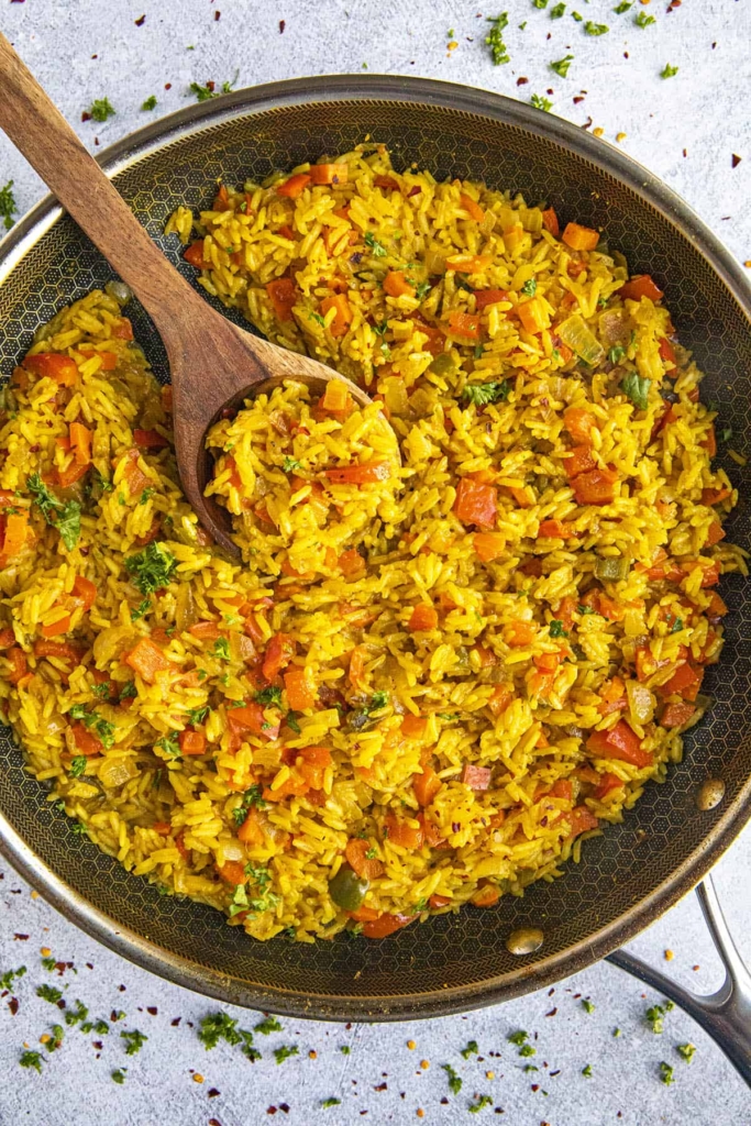 This quick and easy curried rice recipe is huge on curry flavor, done in under 30 minutes, the perfect spicy and comforting side dish or main dish. Are you looking for a quick and easy go-to recipe that can be served up as either a side dish or a main? This is the recipe you’ve been looking for.We’re cooking up easy Curried Rice, and you’re going to love it.Curried rice is a comforting dish that you can whip together with your pantry staples at a moment’s notice. Just grab the rice from the pantry, a few vegetables and seasonings and you’re good to go. It’s an ideal side dish recipe that goes with just about anything, and it’s nice and spicy for the spicy food lover in you. No more boring white rice!