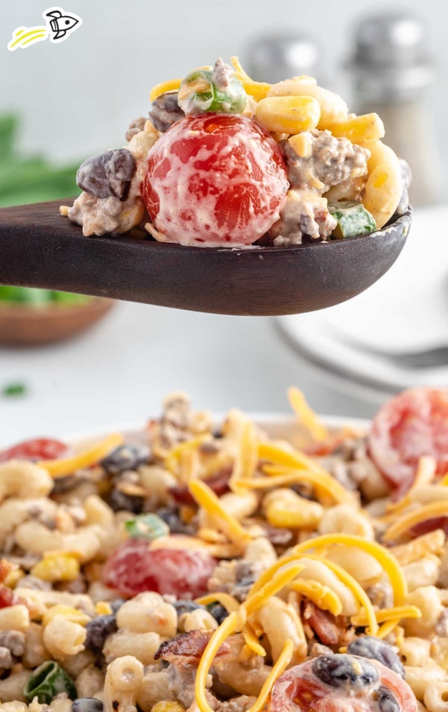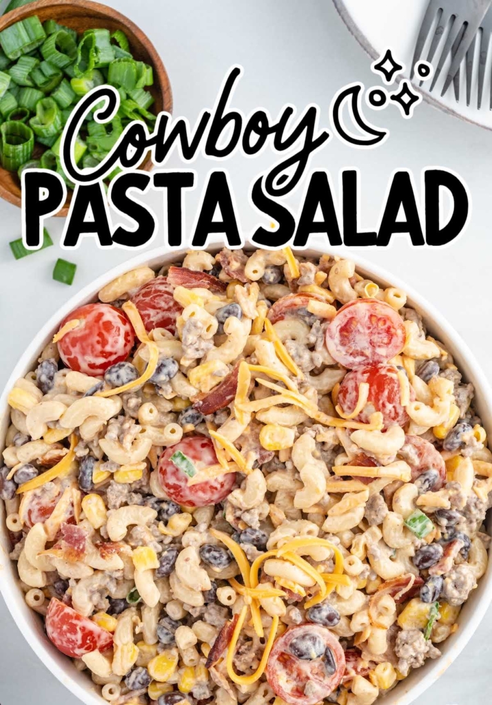 If you are looking for a cowboy-sized dish, our loaded cowboy pasta salad will do the trick. This is not your average macaroni salad and is packed with plenty of protein, veggies, and cheese, plus the perfect amount of kick from the creamy dressing. With a mix of tender pasta, crisp veggies, and savory seasonings, this dish has become a staple of backyard barbecues and potlucks alike. The creamy dressing coats each bite with a delectable combination of tangy and zesty flavors. Whether you’re a fan of traditional macaroni salad or just looking for something new to try, cowboy pasta salad is sure to satisfy your taste buds and leave you craving more.