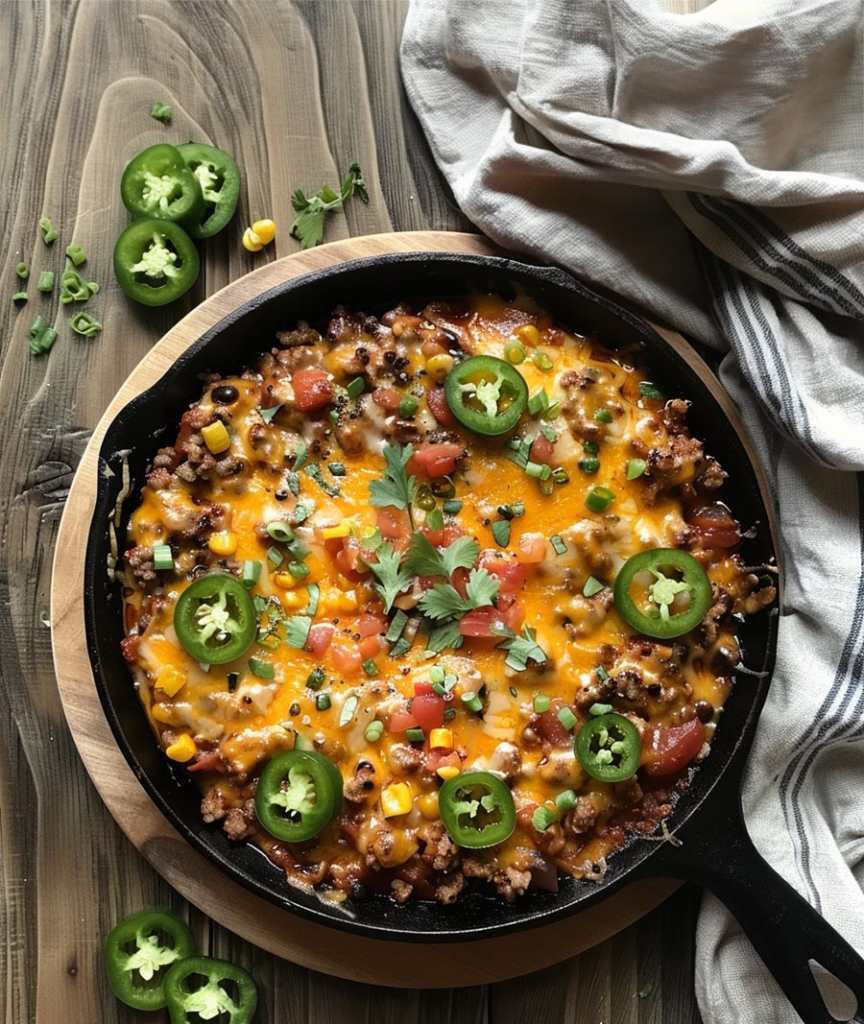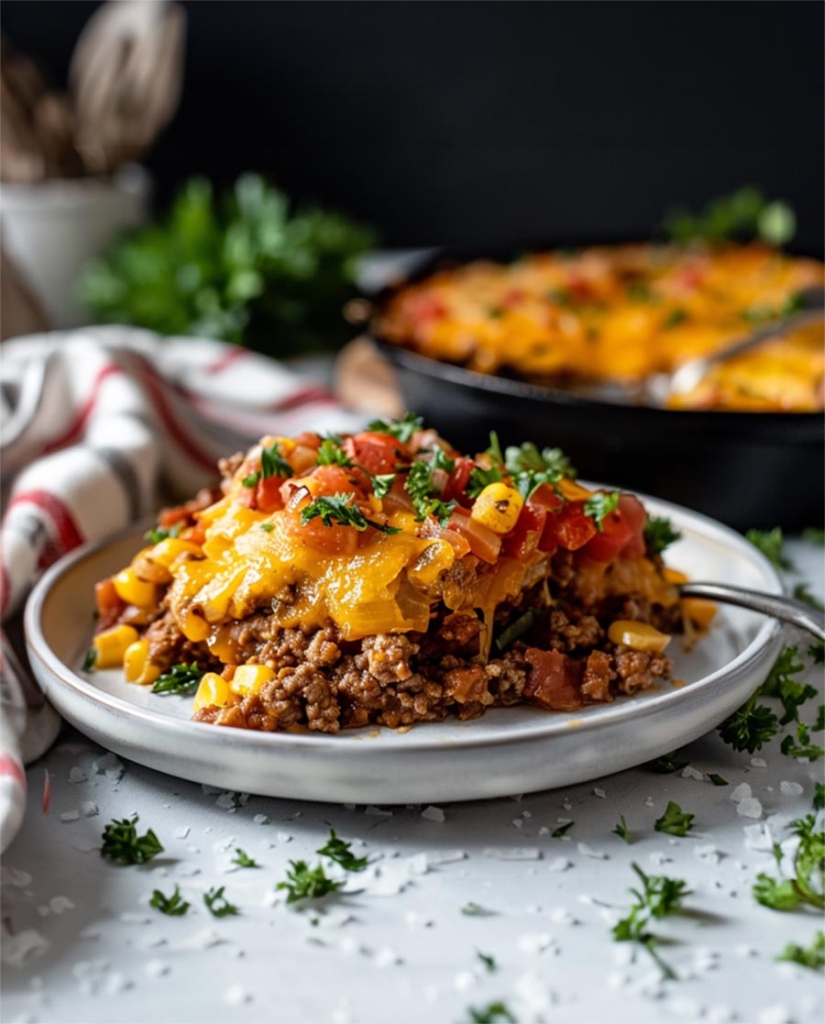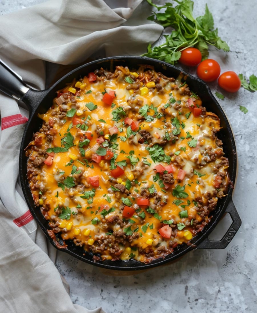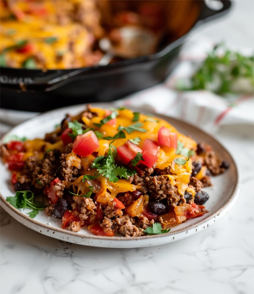 One-Skillet Cowboy Casserole: The Easiest Weeknight Dinner That Will Lasso Your Taste Buds. Calling all busy cowboys (and cowgirls!) Craving a hearty, flavorful meal that’s ready in under 30 minutes? Look no further than this One-Skillet Cowboy Casserole. This recipe is about to become your new weeknight hero, offering a delicious combination of savory ground beef, melty cheeses, and fire-roasted goodness, all prepared in your trusty cast iron skillet for minimal cleanup. But wait, there’s more! This recipe isn’t just about convenience. The one-skillet approach infuses every layer with smoky, caramelized flavors, making this cowboy casserole a taste sensation that will have your family begging for seconds. So ditch the takeout menus and saddle up for a culinary adventure! This One-Skillet Cowboy Casserole is guaranteed to be a crowd pleaser.