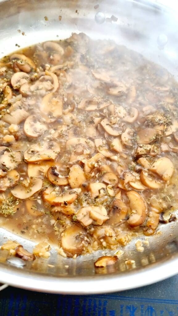 Sauté the Mushrooms: In a large skillet, heat the butter and olive oil over medium-high heat. Add the finely chopped onion and sauté until it becomes translucent, about 3 minutes.