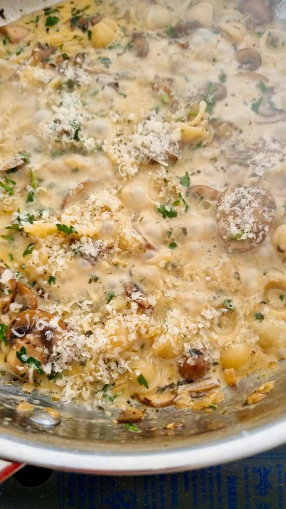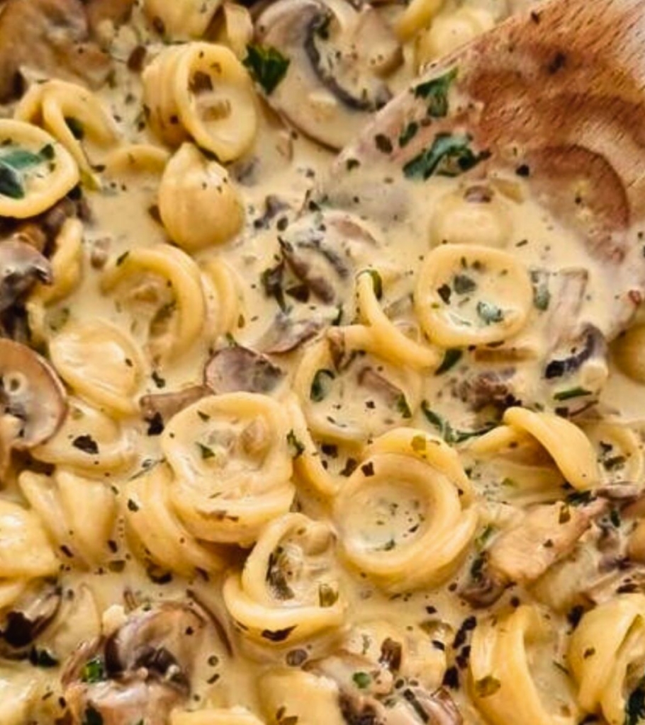 Combine with Pasta: Add the cooked orecchiette pasta to the skillet. Toss and stir to coat the pasta with the creamy mushroom sauce. Cook for a few more minutes until everything is heated through.