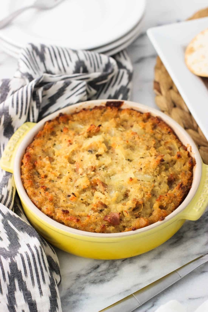 Baked clam dip is a warm, creamy dip that features all of the flavors of baked clams, with much less work! Chopped clams are cooked with onion, breadcrumbs, Parmesan, and spices for a crowd-pleasing appetizer.