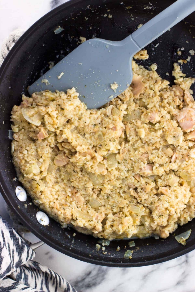 Preheat oven to 350°F. Add olive oil to a skillet and set over medium heat. Add chopped onion and saute for 5-6 minutes, or until the onion is golden.