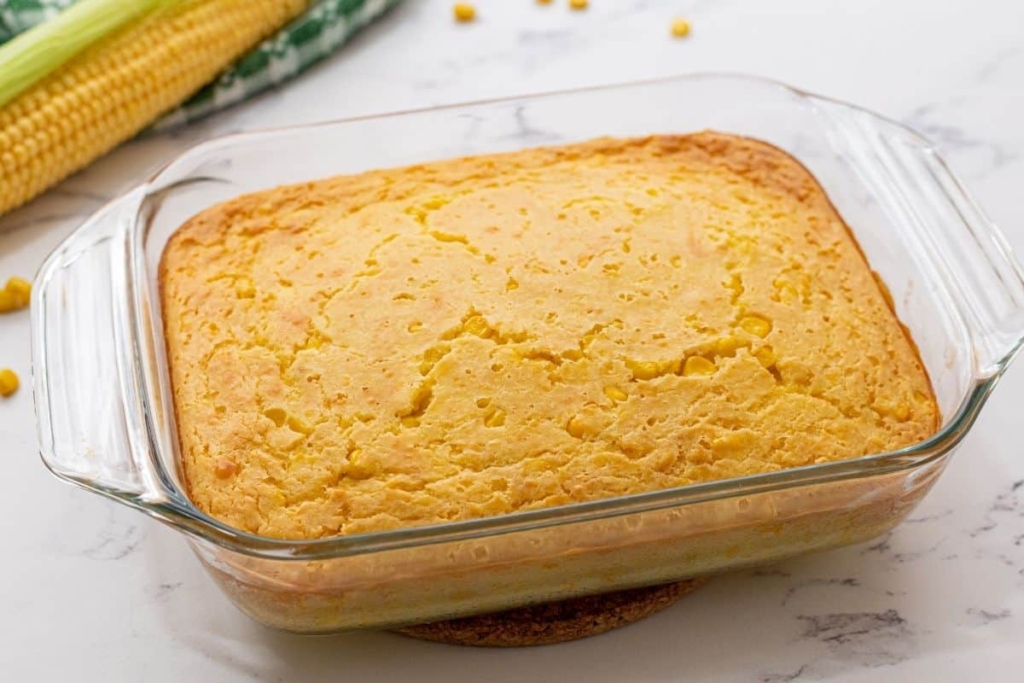 This sweet, yet savory, creamy corn casserole is beyond delicious. A classic side dish that couldn’t be easier to make, even without using a box of jiffy cornbread mix!