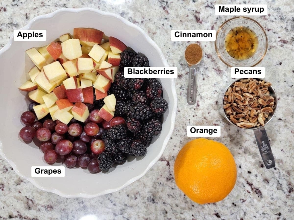 This fall fruit salad is filled with fresh apples, blackberries, grapes, and pecans. Drizzled with a homemade cinnamon orange dressing that packs tons of fall flavor!