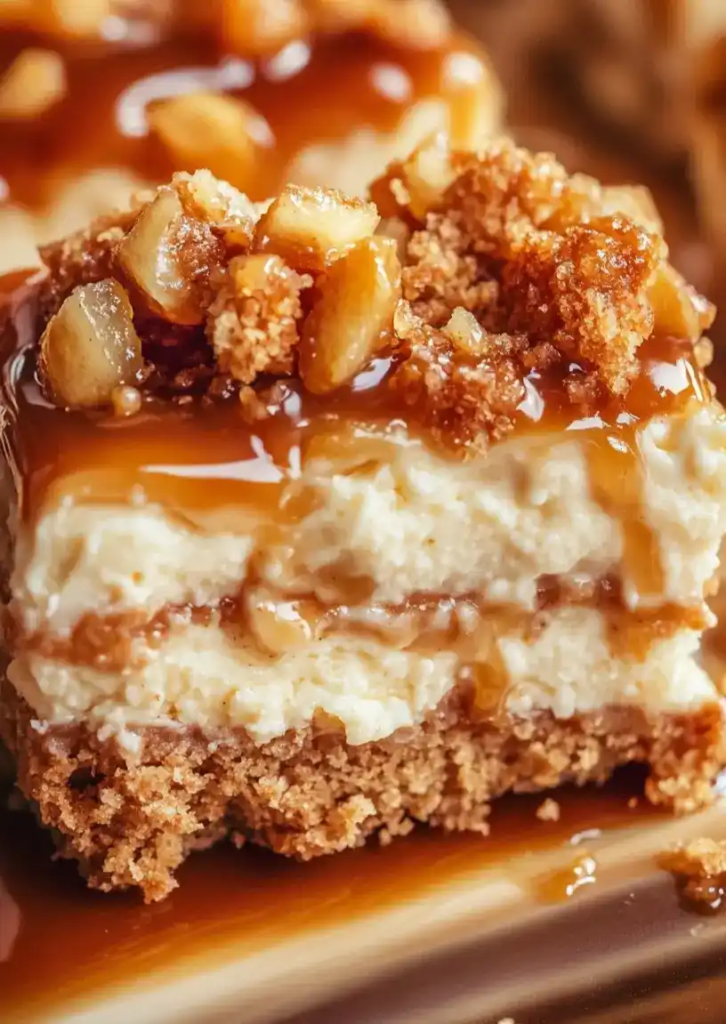 These Caramel Apple Cheesecake Bars are the perfect fusion of fall flavors, combining the richness of cheesecake with the tartness of apples and the sweetness of caramel.