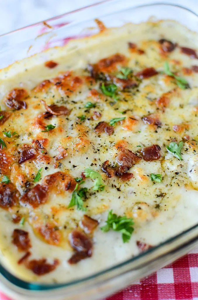 Do you like gnocchi? What about bacon? What about bacon and gnocchi together? (crazy question to ask, I know…. or is it? Well, I feel like I should just say “I’ll just leave this here” because honestly, this dish speaks for itself. I mean, come on, who doesn’t like cheese, bacon, and more cheese? Just those two ingredients make life worth living. Okay, if you aren’t really sure what on what this gnocchi bake is all about, this dish came about by a “what’s in my pantry” kind of thing and as we all know, a lot of times they make the best recipes ever!!! There’s not much to say about it except that it’s absolutely amazing. It’s no diet food, that’s for sure, so don’t even try to “lighten’” it up. It won’t be the same. It’s easy, it’s tasty, every bite is like a huge hug, and it’s called Cheesy Chicken Gnocchi Bake. And you’re welcome.