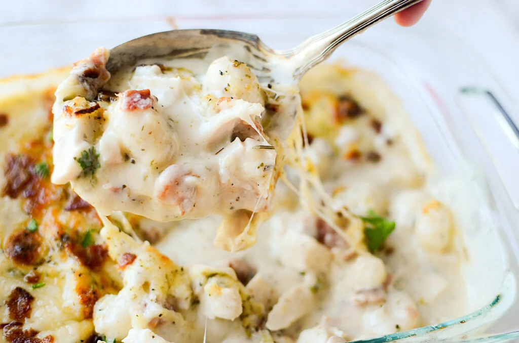 Preheat oven to 350F. In a sauce pan, mix together butter and flour. Cook until butter is melted and mixed with the flour, Slowly add the stock, stirring and letting mixture come to a boil. Keep stirring as it thickens. Add the milk, stir as it thickens. Begin adding the mozzarella cheese, in 1 cup increments. Stir while it melts and thickens the sauce. If you find the sauce too thick, add more milk or broth. Add the gnocchi, chicken, half the bacon, and seasoning, Transfer into a 9×13 baking pan. Sprinkle the remaining bacon and parmesan cheese on top with a tiny bit more Italian seasoning. Bake for 25 minutes or until golden brown. Let the dish sit for 5 minutes before serving. Enjoy!