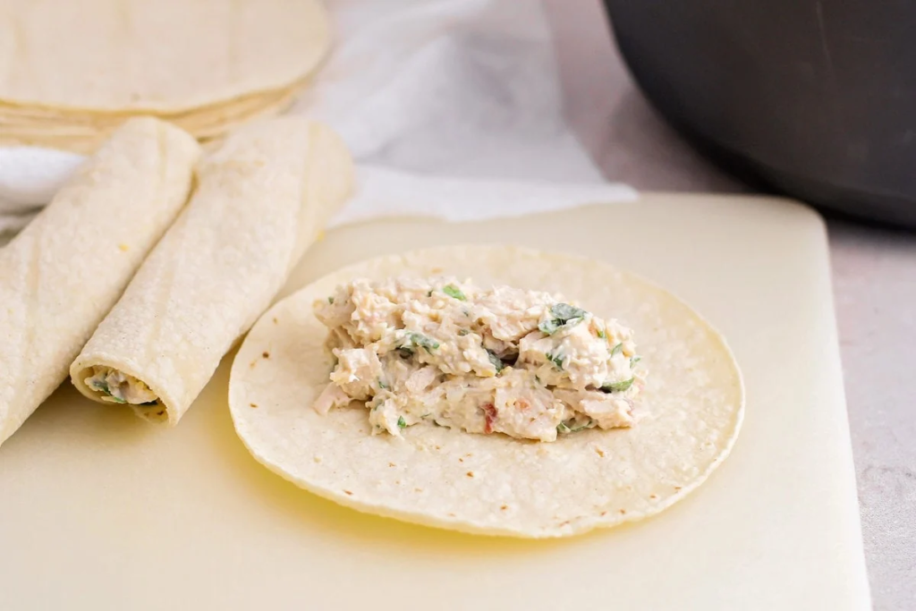 Cook until golden brown on both sides, 2–3 minutes per side. Set on paper towels to drain. Repeat until all 12 (6-inch) tortillas have been filled, rolled, and fried.