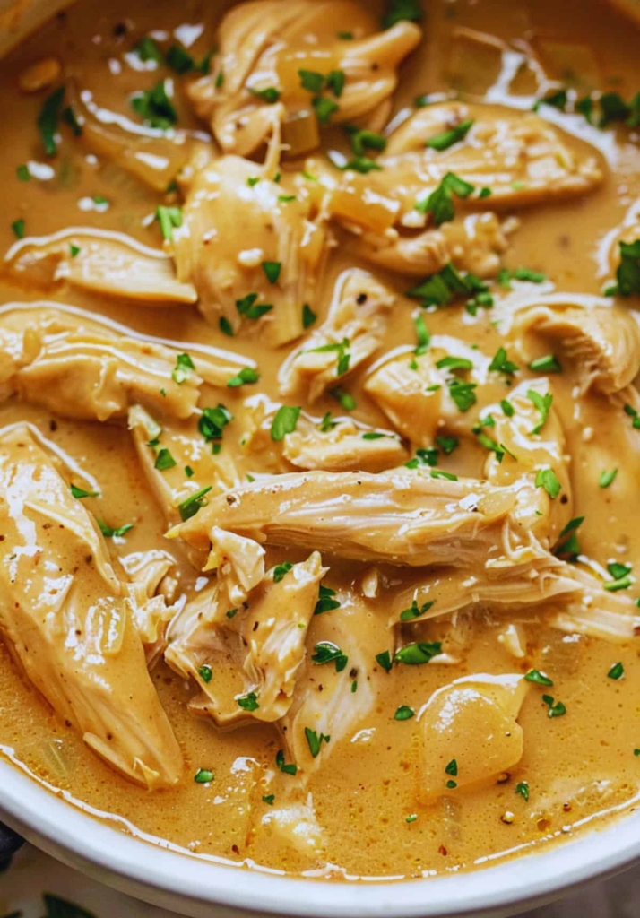 Serve the creamy chicken and gravy over mashed potatoes, rice, or noodles.