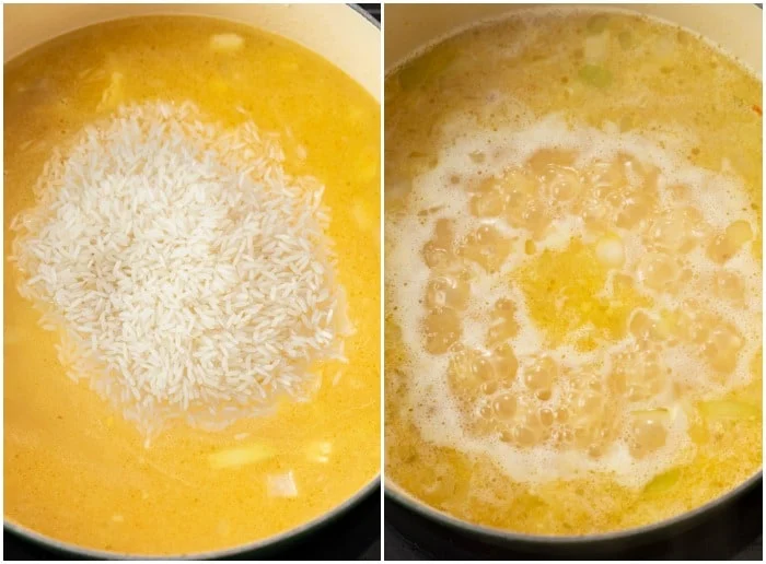 Bring to a boil and add the rice. Bring back to a boil and cover tightly.