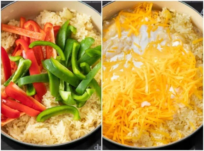 Add the bell peppers and close the lid, don’t stir. It will release starch and make the rice stickier. Cook 5-10 more minutes. (Refer to package for total cooking time.)