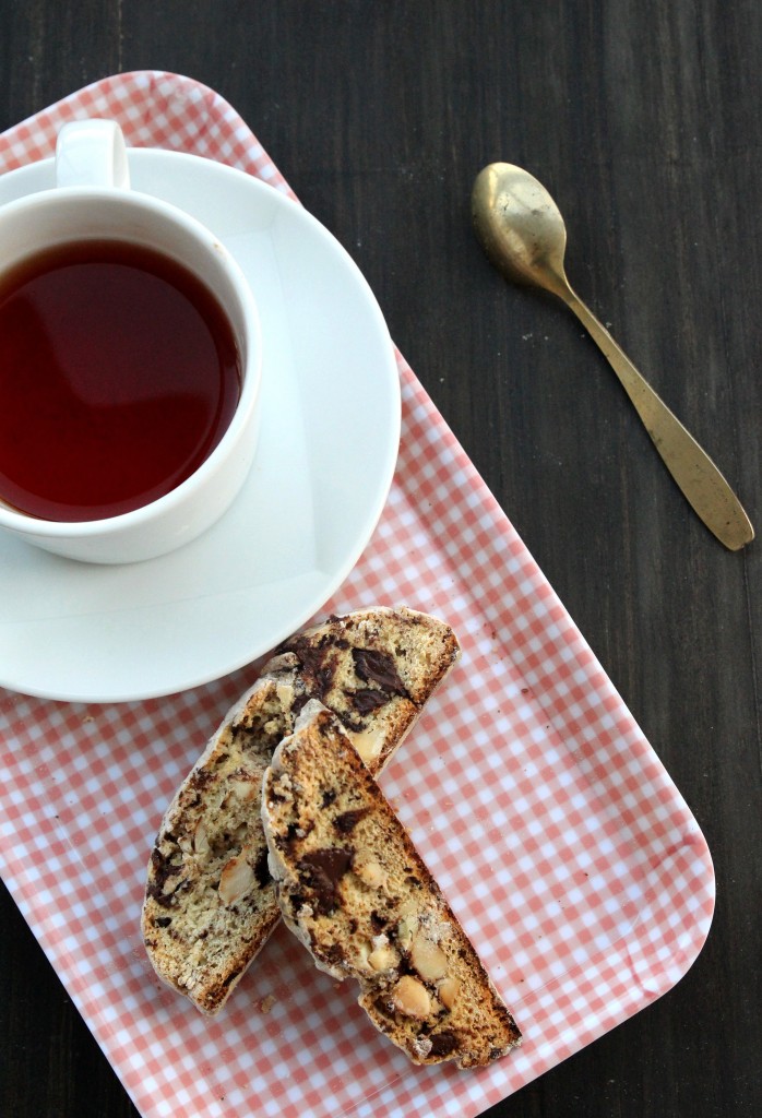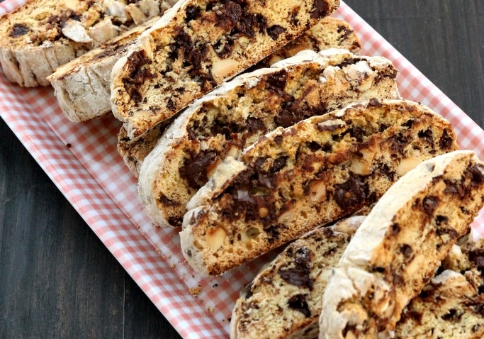 In some comforting way, biscotti is one of those foods that not only remind me of Christmas, but especially, Christmas with my family. Crunchy and fragrant, biscotti has a way of making me feel loved and closer to home. “Biscotti” means “twice-baked”, but don’t be put off by its Italian name nor its seemingly tedious definition. While baking the dough twice is necessary in making biscotti, I’ve found that biscotti is really one of the most flexible and forgiving recipes one can possibly make. And the dough, oh the dough! It’s just so incredibly easy. Begin by beating eggs and sugar together, until the point where the mixture becomes pale yellow and frothy. Now’s the cue to add in your vanilla extract, then beat a little more. Sift in flour, baking powder and salt and then stir well to combine the ingredients. When you soon get a homogeneous dough, here’s when your creativity knows no limits – you can add nuts, dried fruits, chocolate or whatever suits your fancy; some people even add crushed candy canes! Fold them in until evenly distributed, and there you go!