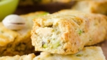 Once cooled, slice the biscotti crosswise into 3/4 inch pieces and place upright back on the baking sheet.