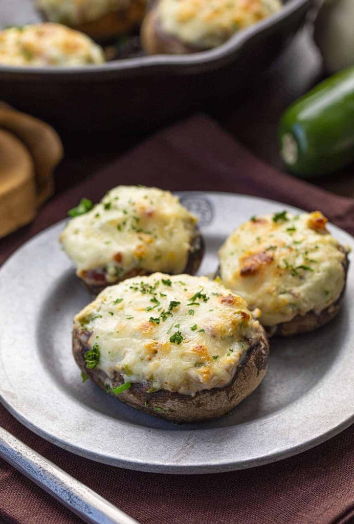 Jalapeno Popper Mushrooms give you all the flavors of a jalapeno popper but stuffed into a Baby Bella mushroom. I love all the flavors of a jalapeno popper, from the cream cheese to the bacon to the heat from jalapeno peppers. To put all of that into a mushroom is the perfect appetizer. Plus, they are so easy to make!