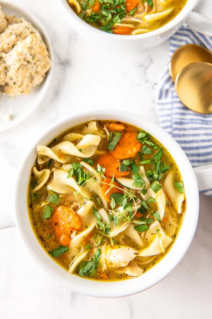 - One-Pot Wonder: Ready in under an hour, this easy chicken noodle soup recipe is a one-pot meal. Fewer dishes to wash at the end of the night is always a win.