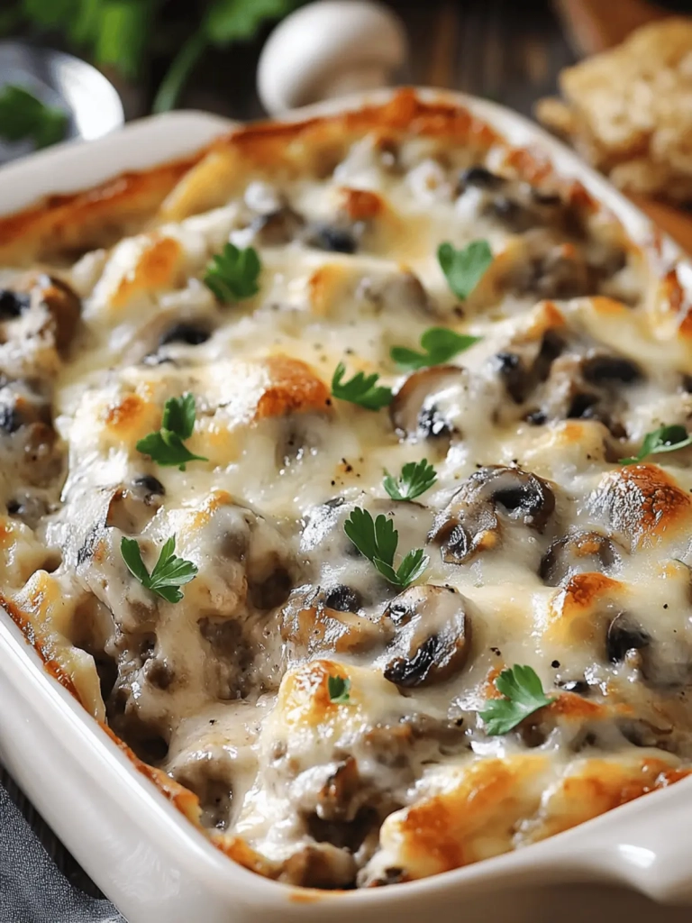 There’s something deeply satisfying about coming home after a long day and diving into a dish that envelops you like a warm hug. Enter my Mushroom and Swiss Burger Casserole—a recipe that transforms the classic flavors of a cheeseburger into a creamy, comforting casserole that your whole family will love. As the aroma of sautéed mushrooms and melted Swiss cheese fills your kitchen, you’ll be transported to a cozy diner where every bite is a celebration of flavor. This dish is not just another meal; it’s a versatile canvas that welcomes whatever ingredients you have on hand. Whether you opt for ground beef, turkey, or even a plant-based meat, each bowlful is a hearty delight that can easily adapt to any dietary preference, including gluten-free options. Topped with gooey Swiss cheese and baked to perfection, it’s become my go-to recipe for family dinners and potlucks. Ready in just 50 minutes, you’ll find that this Mushroom and Swiss Burger Casserole might just become your new favorite way to enjoy comfort food!