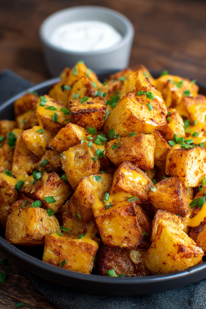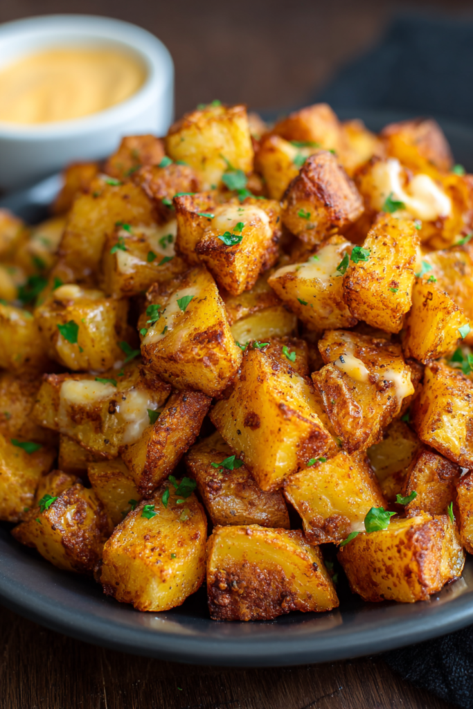 Prepare the potatoes: Preheat oven to 425°F (220°C). Toss cubed potatoes with olive oil, garlic powder, onion powder, paprika, chili powder, cumin, salt, and pepper. Spread evenly on a parchment-lined baking sheet. Roast for 25–30 minutes, flipping halfway, until golden and crispy.