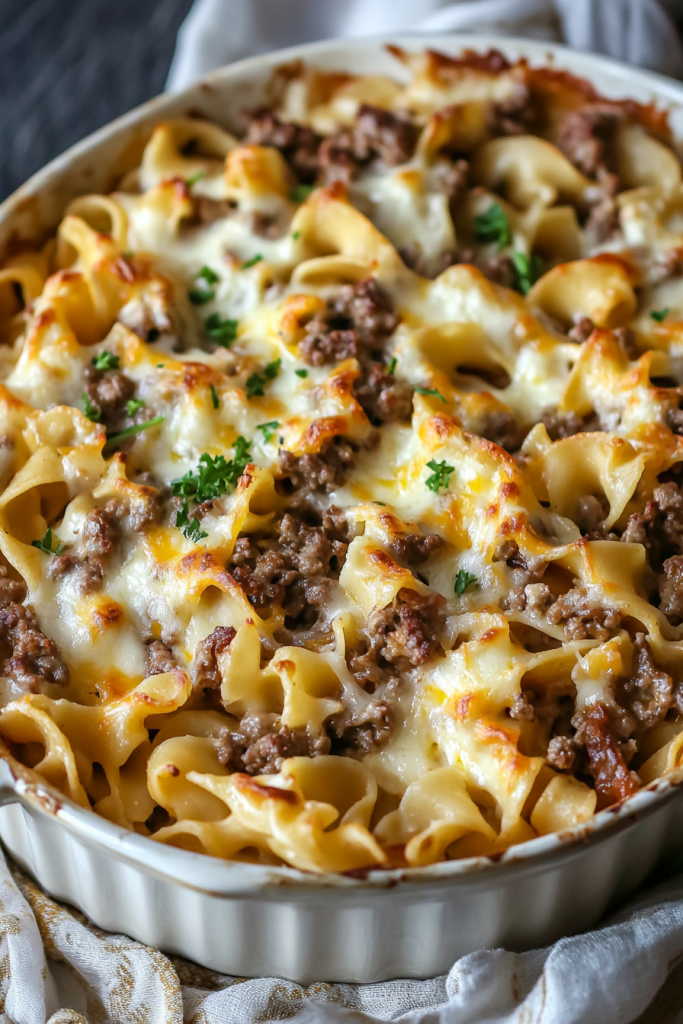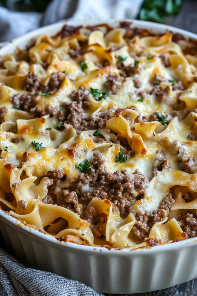 When it comes to comfort food, few dishes evoke as much nostalgia as a hearty casserole fresh from the oven. This Sour Cream Beef Noodle Casserole is the ultimate crowd-pleaser, blending rich flavors with creamy textures to create a meal that feels like a warm hug. Whether you’re feeding a busy family on a weeknight, or preparing a dish for a potluck, this recipe is sure to steal the spotlight. Casseroles have been a staple in kitchens for generations, offering an easy and efficient way to create satisfying meals. This Sour Cream Beef Noodle Casserole takes the classic idea of a casserole and elevates it with a perfect balance of tangy, creamy, and savory flavors. It’s one of those dishes that makes you want to grab a second helping—or maybe even thirds! Imagine a forkful of tender egg noodles coated in a rich, cheesy sauce, paired with the hearty bite of seasoned ground beef and just the right amount of tang from the sour cream. It’s a symphony of flavors that feels both indulgent and homey. Whether you grew up eating casseroles or are new to their charm, this dish will quickly become a favorite in your household. The combination of creamy and savory flavors makes this casserole a guaranteed hit. It’s an excellent way to feed a crowd, and the leftovers (if there are any!) taste just as good the next day. The recipe’s simplicity and adaptability also make it a go-to for meal prepping or weeknight dinners.