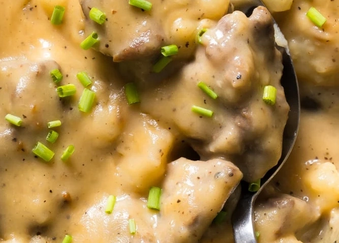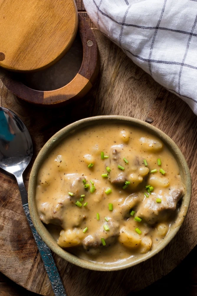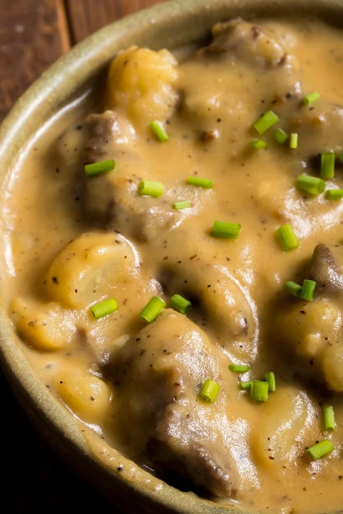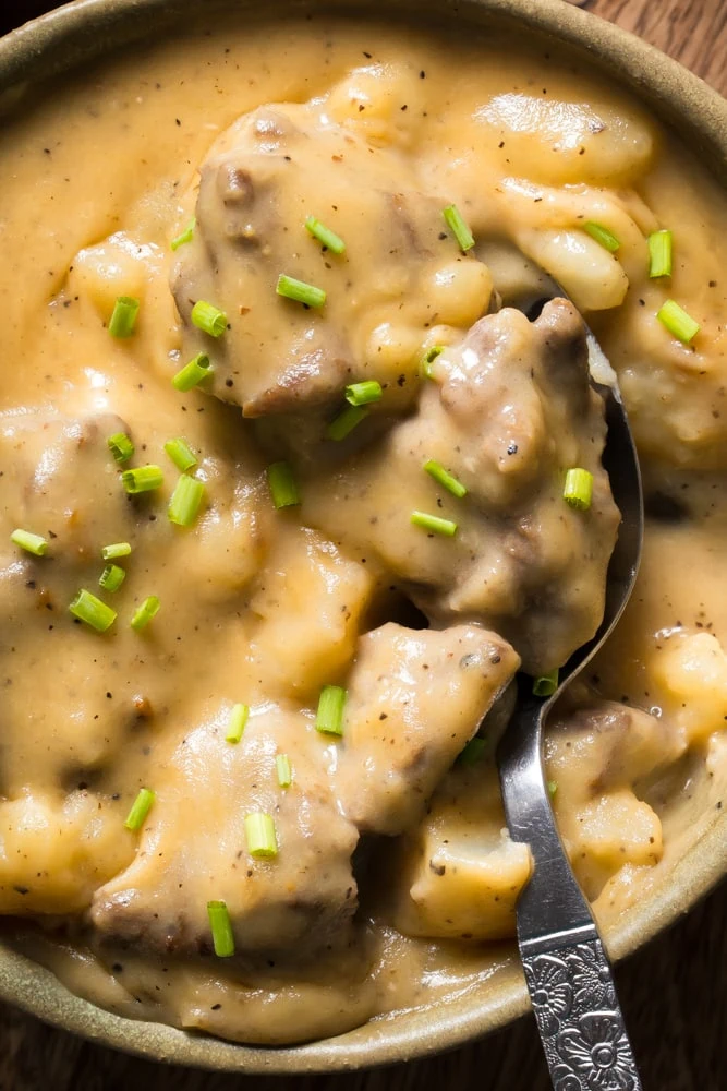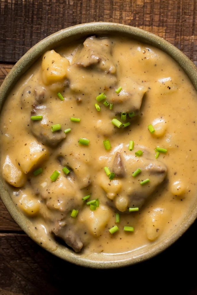Steak and potato soup is a creamy combination of chunks of beef and potatoes. A creamy, flavorful broth is created with the potatoes and the rich beef flavor. It’s a simple recipe to make during the winter months.
