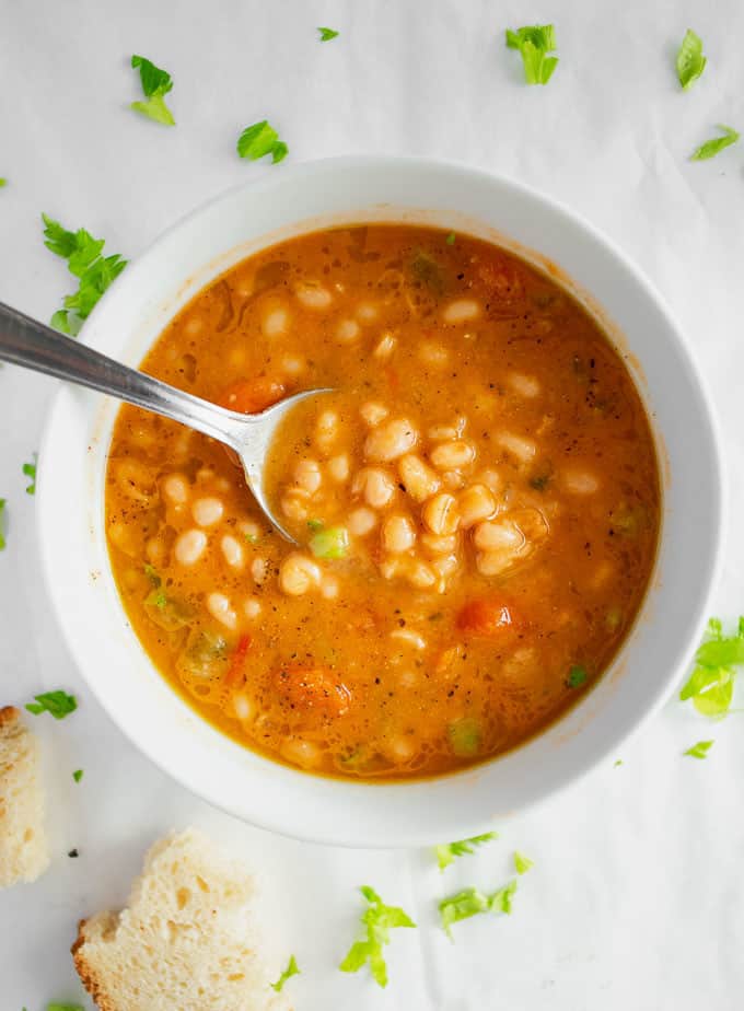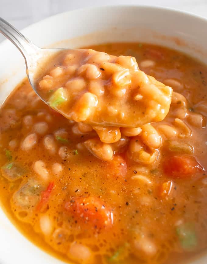 It’s best to cook this soup using dried beans because you get a much more nutritious, thick, and creamy soup. Dried beans have more nutrients (protein, fiber, iron, potassium, and magnesium) than canned beans. Plus they don’t contain sodium. So you get to decide how much you add. Also, slowly cooking the beans from scratch means they release their starch into the soup. Yielding a thick and creamy soup.