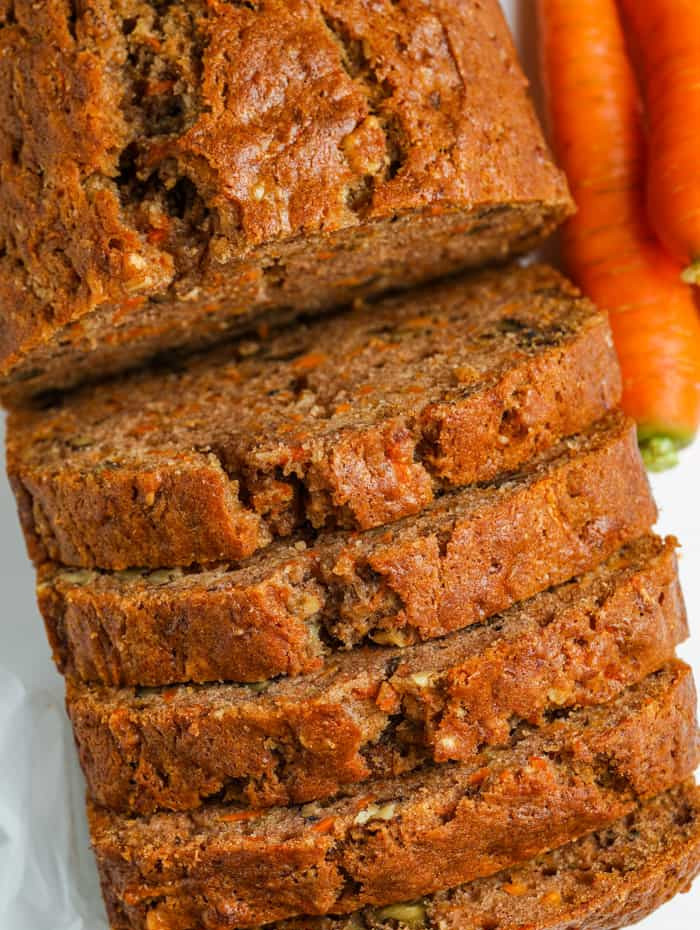 Preheat oven to 350˚F. Line a 9×5 loaf pan with parchment paper. Whisk together dry ingredients in a medium bowl. Set aside. Mix carrots, eggs, oil, milk, and vanilla in a large bowl. Add the dry ingredients to the wet mixture. Fold in walnuts and mix just until combined. Pour into prepared pan and bake for 55-65 minutes or until a toothpick comes out clean.
