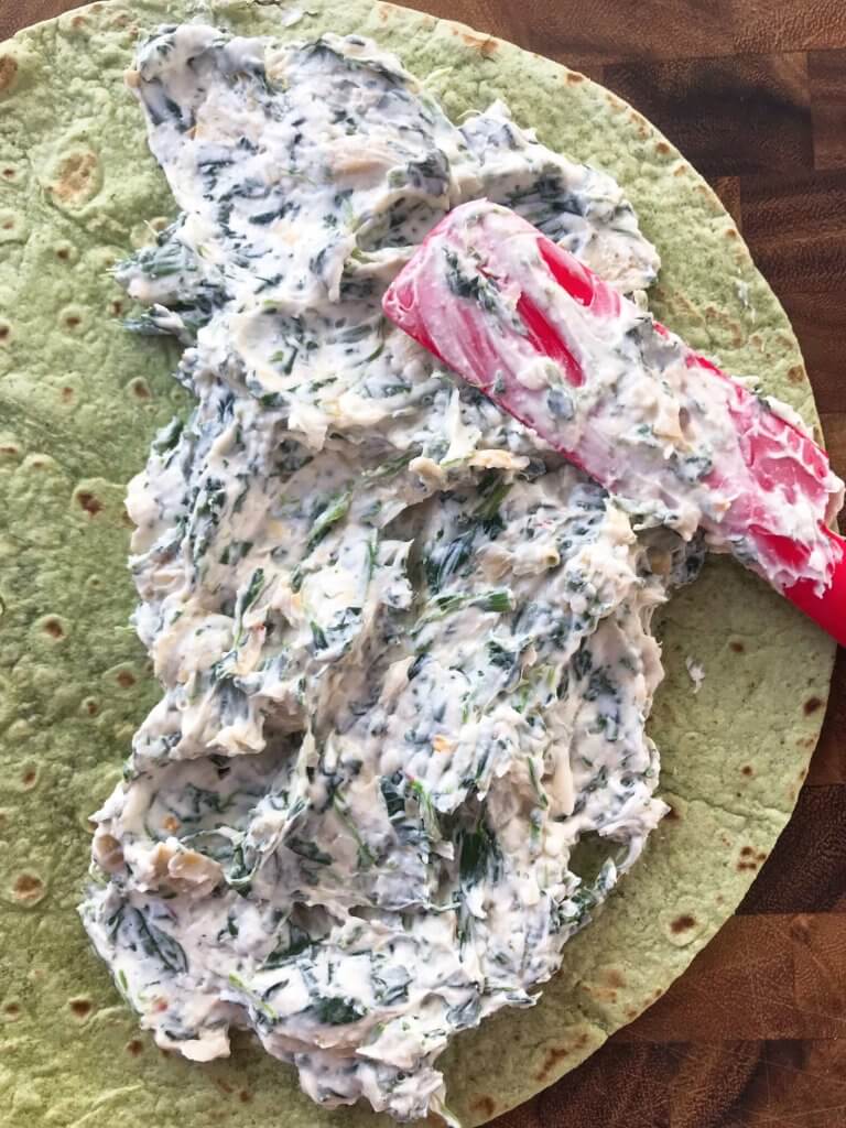 – Make sure to drain the spinach and artichoke hearts if they are frozen and/or in an oil as the extra moisture leads to a soggy roll up!