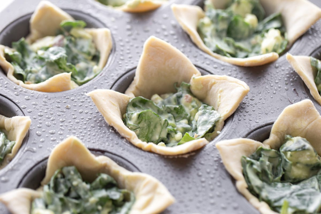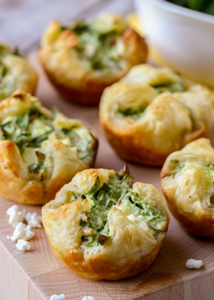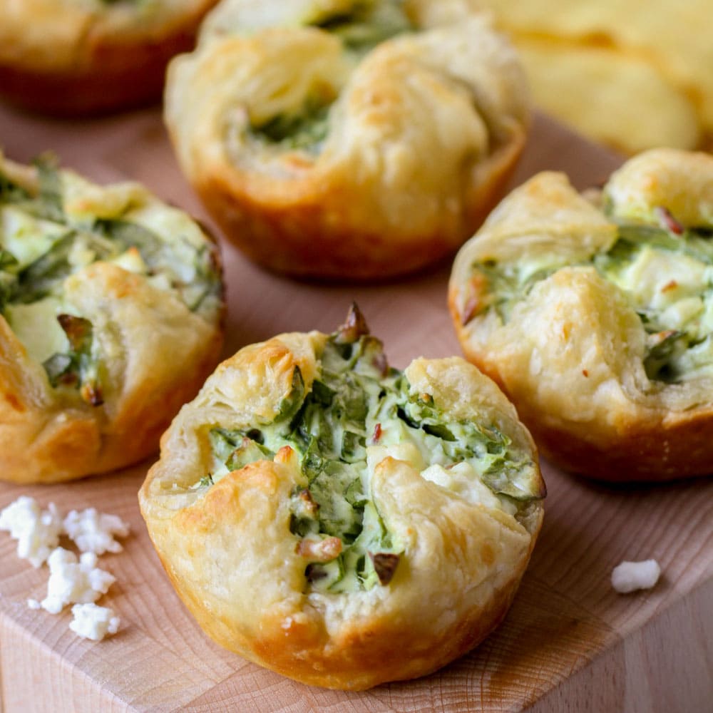– Replace the puff pastry with phyllo tart cups. Fill the cups with the spinach filling. Bake at 400°F, but for only 8-12 minutes.