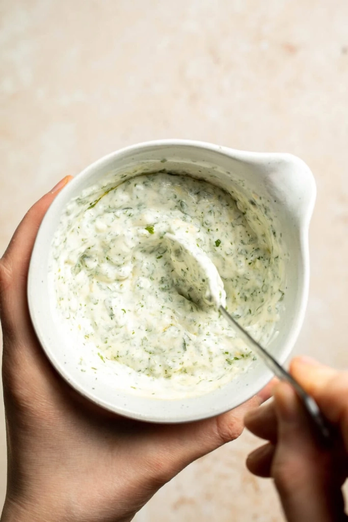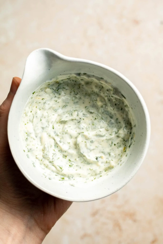 – Use fresh herbs. Fresh herbs are key to getting that bright, zesty flavor in the green goddess sauce. If you’re using dried herbs, use about ⅓ of the amount called for with fresh herbs.