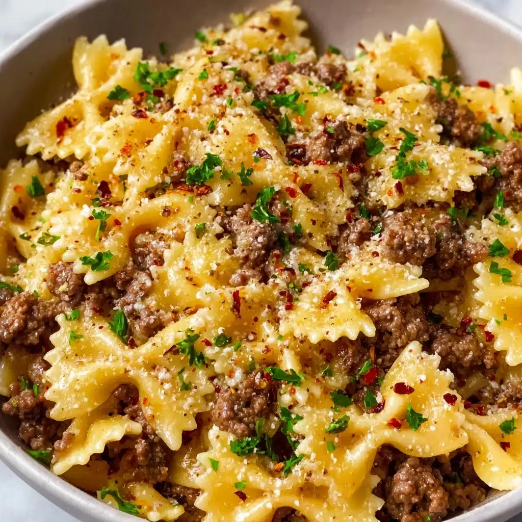 If you’re on the prowl for quick, crowd-pleasing comfort food, you’re about to meet your new weeknight ace: Garlic Butter Bowtie Pasta with Ground Beef. This dish is a glorious mashup of savory beef, silky garlic butter, and al dente pasta all tied together (literally!) in adorable farfalle bows. It’s rich, deeply aromatic, and perfectly punctuated with nutty Parmesan and pops of fresh parsley. Whether you’re feeding a family or just need an easy win after a long day, this recipe checks every delicious box. There’s something undeniably special about a bowl of Garlic Butter Bowtie Pasta with Ground Beef—it delivers big on comfort, flavor, and satisfaction in every bite. Whether for a simple family dinner or to treat yourself after a long day, it never disappoints. Give it a try and see why it just might become your new go-to pasta favorite!