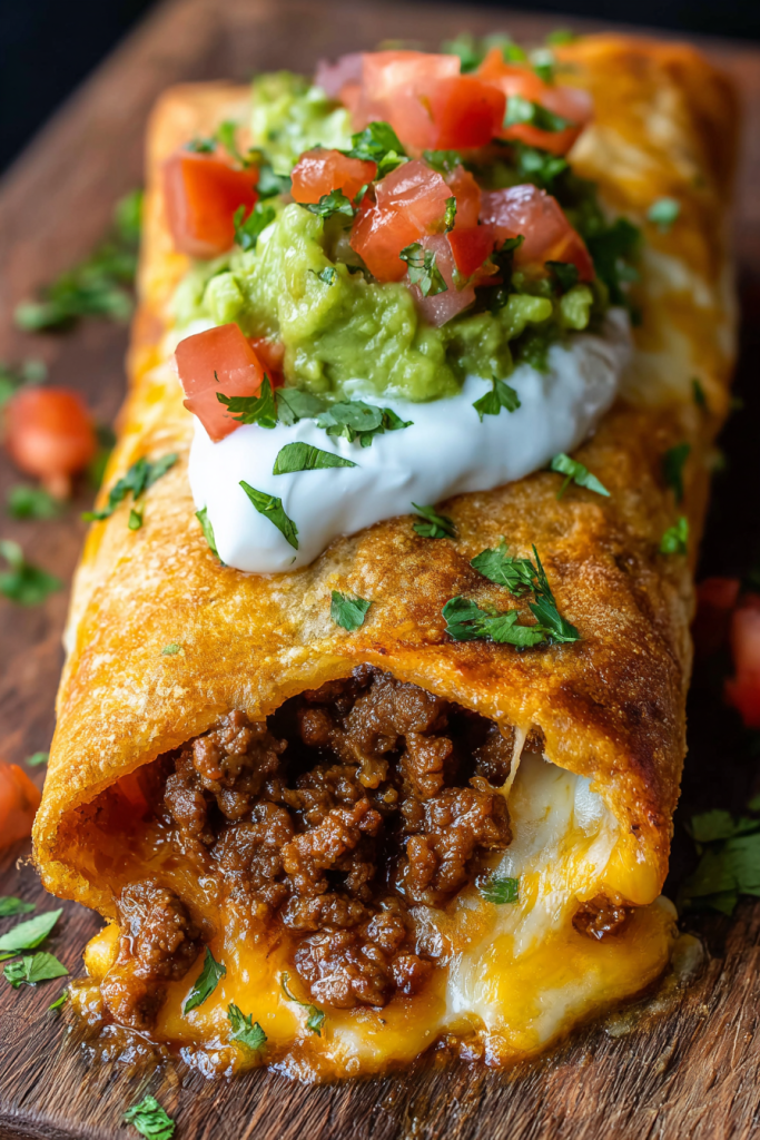 This Beef, Bean, and Cheese Chimichangas recipe is a crispy, golden delight—filled with seasoned beef, melty cheese, and fried (or baked) to perfection. A Tex-Mex favorite that’s easy to make and always a crowd-pleaser! If there’s one recipe that instantly transports me back to cozy family dinners, it’s Beef, Bean, and Cheese Chimichangas. I still remember the first time I had them—crispy, golden tortillas stuffed with savory beef, melted cheese, and warm spices, straight out of the oven. It wasn’t just dinner; it felt like a celebration at the table. Everyone reached for seconds, and I knew I had stumbled on a keeper. Chimichangas are a Tex-Mex classic, often deep-fried until crunchy and irresistible. But the beauty of this recipe is that you can achieve that same indulgent crispiness by either frying or baking—making it adaptable for every craving. Whether you’re after that restaurant-style deep-fried crunch or a slightly lighter oven-baked version, these chimichangas won’t disappoint. What I love most is how customizable they are. You can keep it simple with seasoned ground beef and cheese or load them up with beans, rice, peppers, and even jalapeños for an extra kick. They’re freezer-friendly, perfect for make-ahead dinners, and they reheat beautifully—meaning you can always have a comforting Tex-Mex dinner waiting in your kitchen. So, if you’re craving something cheesy, crispy, and satisfying, this Beef, Bean, and Cheese Chimichangas recipe is exactly what your dinner menu needs.