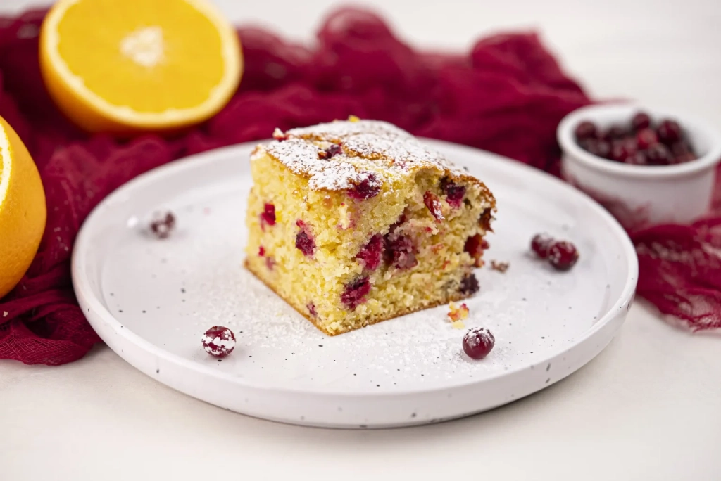 ⇢ Balance of Sweet and Tart: The tart cranberries add bursts of flavor that balance the cake’s sweetness perfectly.