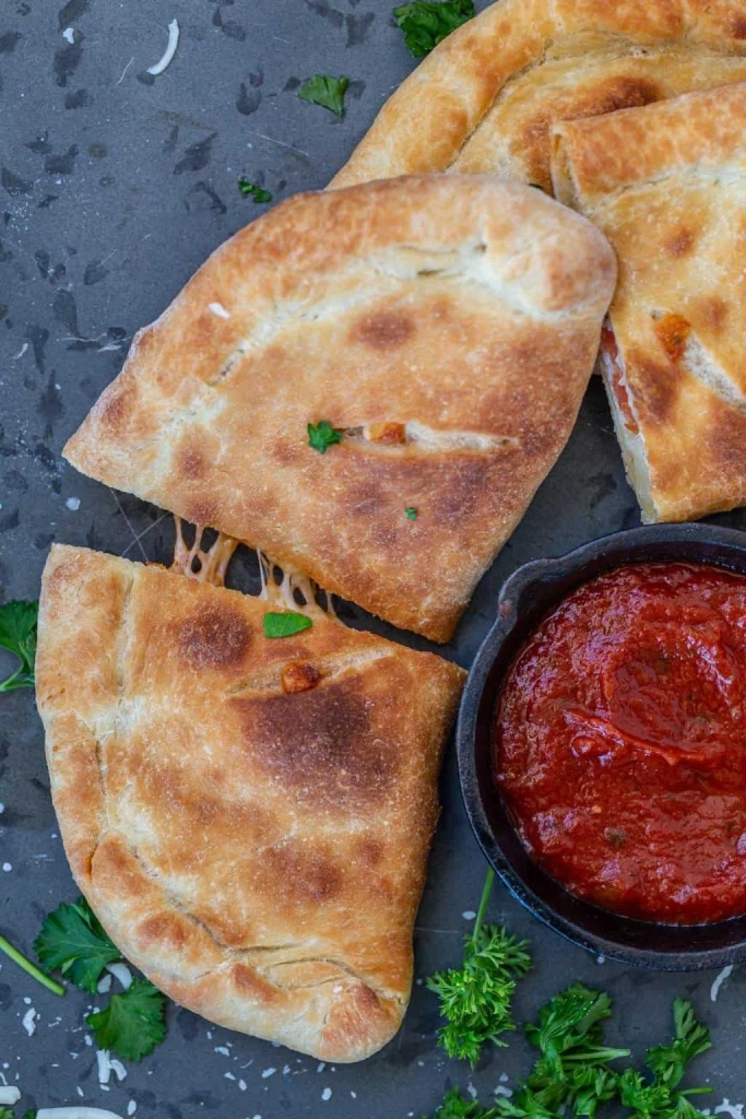 ➺ Texture: These calzones feature a super crispy outer crust and a gooey center of pepperoni, cheese, and pizza sauce.