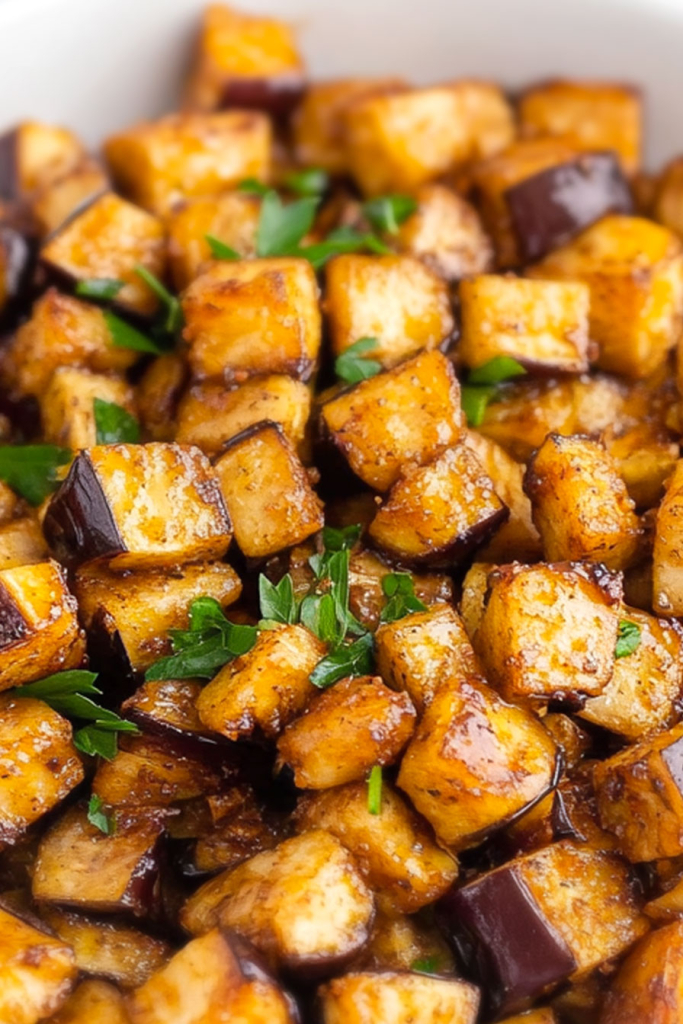 Step 1: Prepare and Salt the Eggplant: Begin by spreading cubed eggplant out on a large flat surface. Generously salt the eggplant with sea salt, and let it sit for 15-30 minutes. This step helps to draw out excess moisture, and reduce any bitterness. Afterward, pat the eggplant dry, with a paper towel, or kitchen cloth, to absorb the moisture.