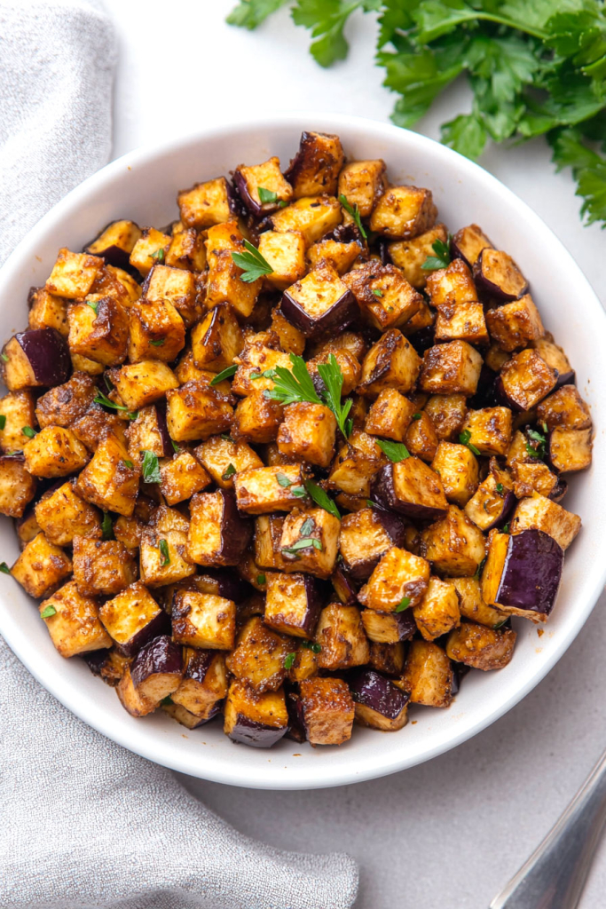 1 large eggplant (cut into 1 inch cubes for even cooking)