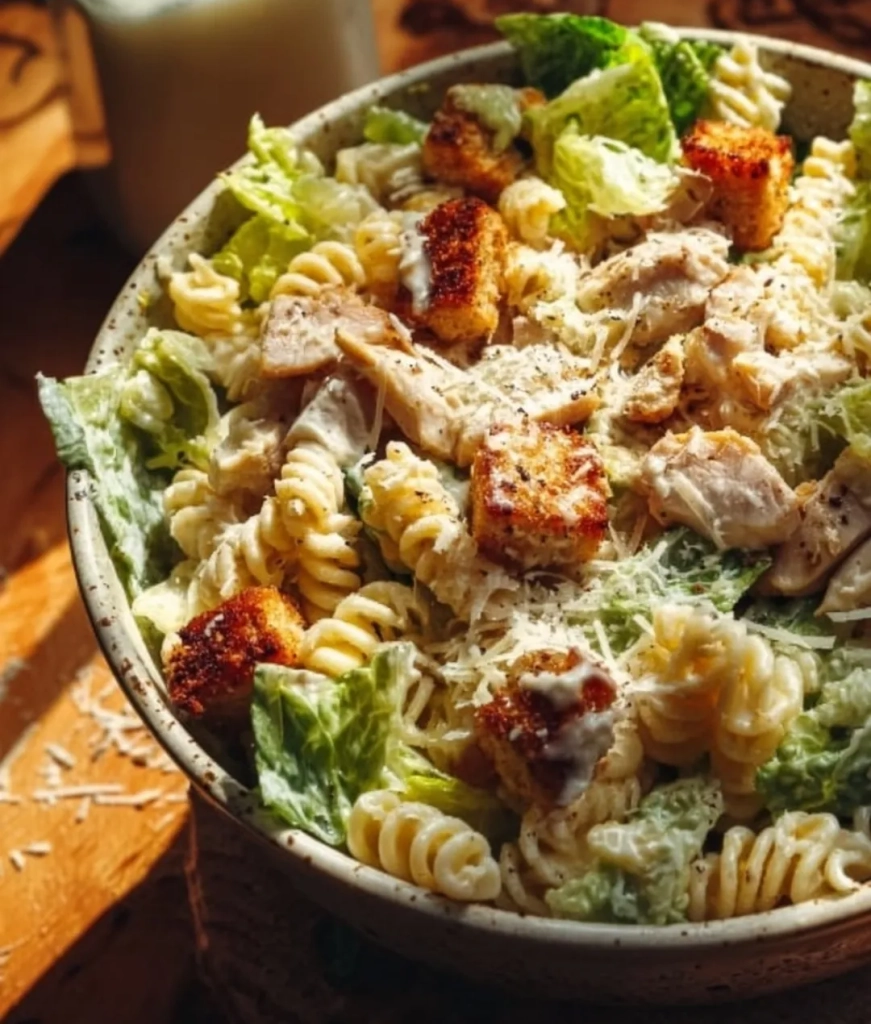 A: You can safely store it for up to 3 days in an airtight container. For the freshest flavor, add lettuce and croutons right before serving. This keeps the greens crisp and the bread crunchy while still letting the pasta and chicken soak up all that Caesar goodness.